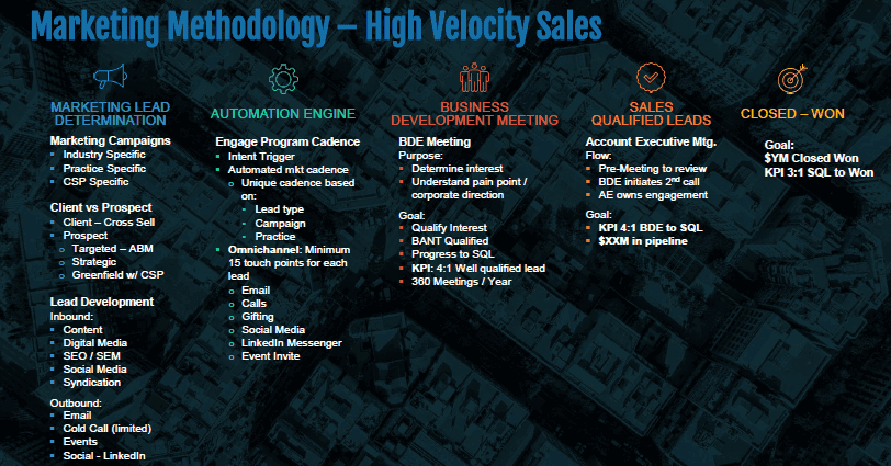 The High Velocity GTM Framework isn’t a static playbook—it’s a dynamic engine designed to evolve with your market. Whether you’re launching into a new vertical or scaling an existing segment, this framework ensures your go-to-market strategy remains focused, coordinated, and high impact.